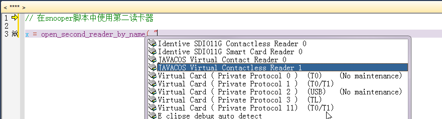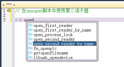 // 在snooper脚本中使用第二读卡器