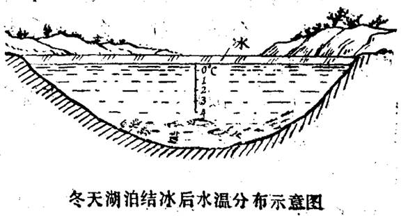 水冻成冰能浮在水面上,这是大自然的巧妙安排。它有效地保护了寒冷地带的水中生物。你看,冬天来了,表层的水把自己的热量传给冷空气以后,本身温度降低,密度增大,于是沉入底部,把密度较小的水挤了上来。当所有的永都冷到4°C时,就停止了上下对流。因为这时密度最大。再继续降温,表层展水降到0°C以下就会结冰。天气再冷,冰层会逐浙加厚,但水底总是4°C左右。所以,在朔风凛冽的严冬,水中生物仍然能过着悠然自得的舒适生活。