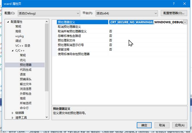 1>------ 已启动生成: 项目: vcard, 配置: Debug x64 ------